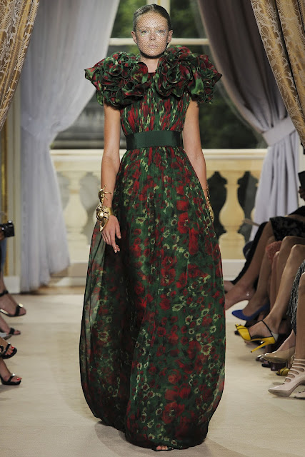 A model presents a creation by Italian designer Giambattista Valli as part of his Haute Couture Fall/Winter 2012-2013 fashion show in Paris